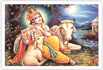 "As described in the Brahma Samhita (surabhi apbipalayantam), Lord Krishna on His planet, Goloka Vrindavana, engages in tending the surabhi cows. These cows are the Lord's pet animals." (Srimad Bhagavatam 8.8.2 purport) |